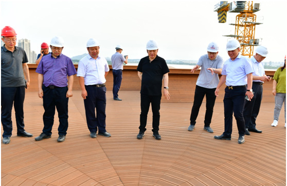 7月3日,山东省住建厅总工程师梁泽庆、质量评估中心主任王华杰、威海市住建局副局长吴洪涛、荣成市住建局副局长王学强、荣成市建筑工程事物服务中心主任孙乃毅一行莅临我公司施工的荣成市少年宫工程现场进行视察指导。集团董事长于海国、副总经理倪积林、周广岩、张华波及项目相关管理人员陪同。